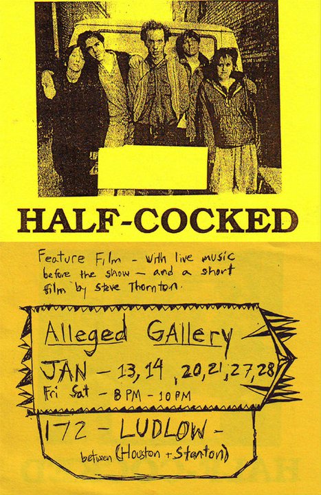 I met Suki through her roommate who was in a band we often played with. Shortly after meeting we started to spend a lot of time together. She had already gone to film school as an undergrad and complained about the fact that NYU was kind of a waste of time. Eventually I talked her into dropping out of Film School. In addition to having gone to Weslyan for film she worked in LA for a couple of years as an assistant editor. The summer after we met she worked as the directors assistant on “Party Girl”, and shot-listed the entire feature. It was clear that she knew what she need to know in order to move forward. She finally agreed and that winter, we set to work making Half-Cocked. From the start, we knew that he film was meant to be a hybrid documentary – though that term hadn’t really been coined yet. We wanted to continue the documentation of the underground that I had been doing through photos, but we didn’t feel like we should make a documentary. Suki had focused on classic Hollywood Cinema at Weslyan and I had studied a lot of social sciences which led me to internalize a kind of colonialist/anthropologic idea of documentary that demanded “critical distance” from a subject. I felt like I was too much a part of that world to make a “documentary” so we tried to think about how to tell a story that would capture the time and place as a document. 25 years later I feel the opposite is true about documentary; that if you have too much “critical distance” then you are likely coming from an unconsciously colonialist perspective. It’s a complex issue, and there’s a space in which people who are a part of a community can document their world without making propaganda. I also believe that it’s important to work to find “open awareness”, in which we observe the world with awareness of our own internalized bias, work to address that, and make room to respond when holes in that mechanism are pointed out. If our thinking isn’t evolving then we cease to grow and learn.
